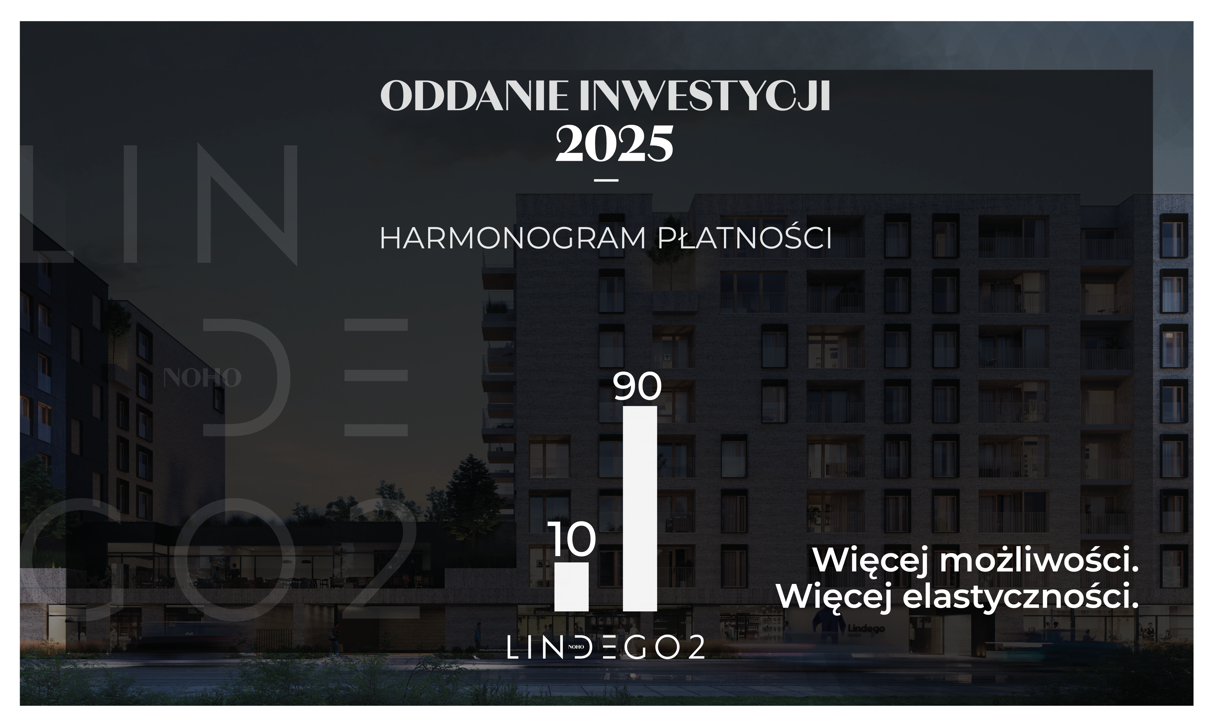 LINDEGO2 is an investment in a unique location on the map of Krakow. We give you more than an apartment - we give you living comfort, safety, community, green and friendly surroundings, ideal infrastructure and beauty - durable, functional and making your life take on a new quality of life in Standard to the power of N.